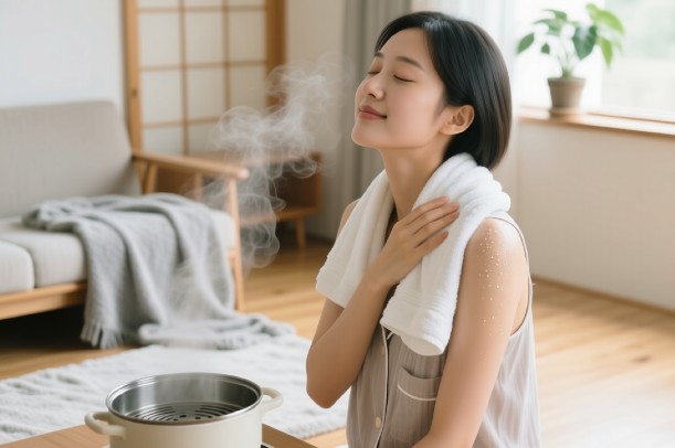 ・蒸しタオルやホットパックで温める