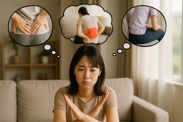 おしりのしこりや座ると痛い症状は、筋肉の緊張・皮下の炎症・神経や骨の圧迫など、複数の要因が絡み合っていることが多いです。