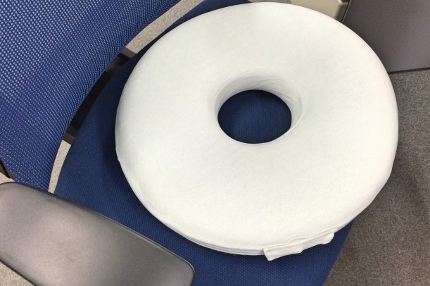 デスクワーク中は、ドーナツ型クッションやジェルクッションを使用して、坐骨への圧を分散させるのがおすすめです。