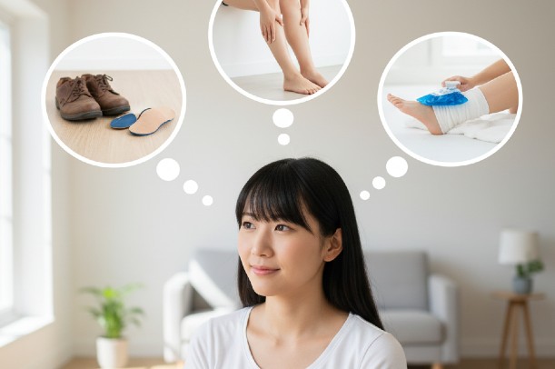 かかとの後ろが痛いときは、まず自分で痛みの場所とタイミングをチェックし、アイシングやストレッチなどのセルフケアを試してみることが大切です。靴や姿勢を見直しつつ、痛みが続くようなら早めの相談を心がけましょう。