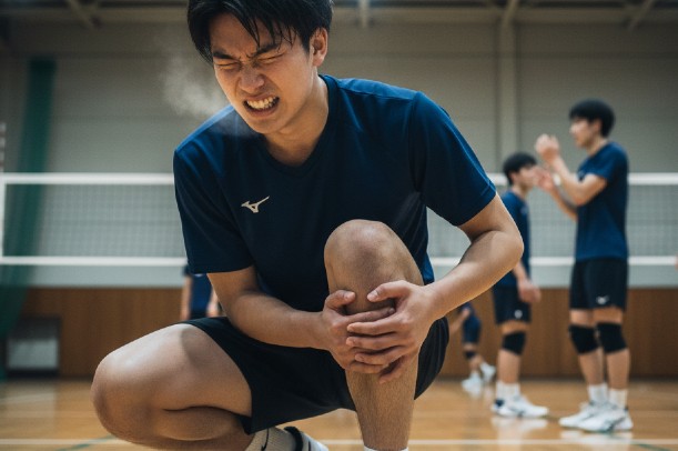 バスケットボールやバレーボールなどの競技では、着地の瞬間に大きな衝撃がかかります。このとき、太ももの前にある**大腿四頭筋(だいたいしとうきん)**が強く収縮し、その力が膝蓋腱に伝わります。何度も繰り返すことで腱の組織が疲労し、炎症反応を起こすのです。
