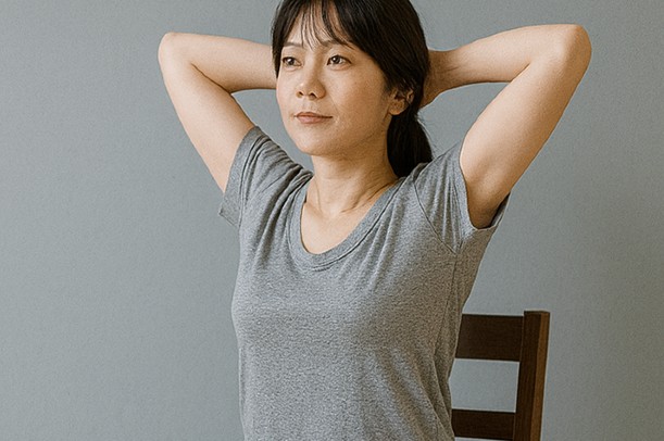 肩甲骨の動きが小さくなると、首がその分だけ支えの役割を引き受けやすくなると言われています。肩を後ろに回す動きをゆっくり行うと、肩甲骨が広い範囲で動き、首まわりの緊張が和らぎやすいとされています。日常生活の中でちょこちょこ動かすだけでも変化が出やすいとされ、デスクワークの合間に行う人も多いと言われています。