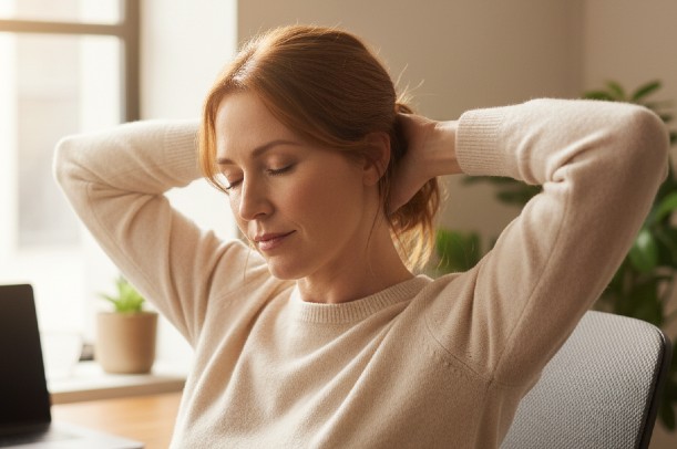 痛みが落ち着いてきたら、軽いストレッチや姿勢リセットを取り入れることで再発予防につながります。