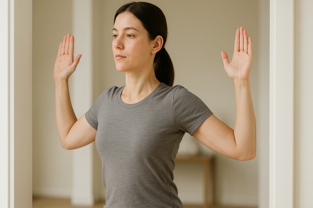 - 壁に手をついて、腕を前後・上下にゆっくり動かす