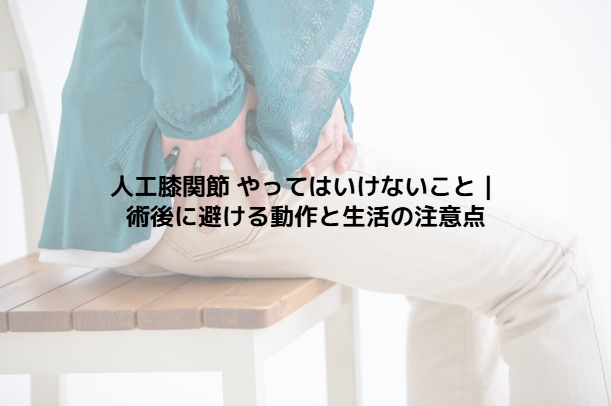 人工膝関節の術後にやってはいけないことの代表として、深くしゃがむ動作や正座が挙げられると言われています。人工関節は大きく曲げる動きに制限がある場合があり、過度な屈曲は負担につながる可能性があると説明されています。特に正座は膝に体重が集中しやすく、無理をすると痛みや違和感が出ることがあるようです。可動域には個人差があるため、主治医の指示に従うことが大切とされています。