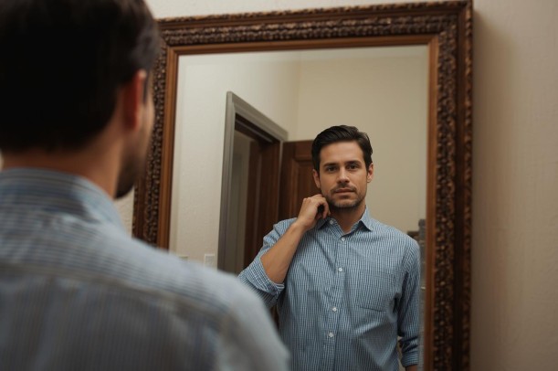 - 正面から鏡を見る