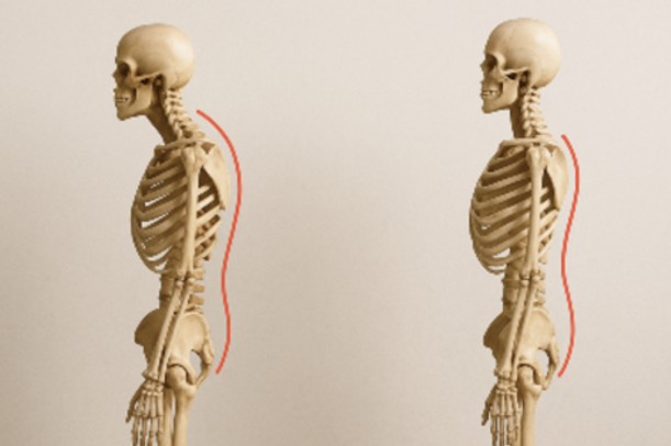 長時間のスマホ操作やデスクワークで背中が丸まると、頭の重みが首や肩にかかり、背骨や骨盤の位置が少しずつズレていくとされています。