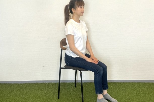 やり方は、椅子に座ったまま右足のくるぶしを左太ももの上にのせ、背すじを伸ばしたまま少し前に体を倒します。お尻の奥がじんわり伸びていればOKです。呼吸を止めず、20〜30秒ほどキープしましょう。痛みを感じる手前で止めるのがポイントです。