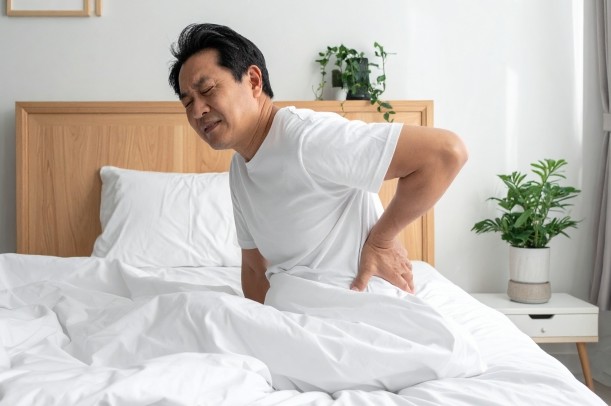 人は寝ている間に椎間板が水分を吸収しやすく、朝はその厚みが増えた状態になると言われています。この状態では腰の動き始めで負担を感じやすく、起き上がる際に痛みが出る人もいると説明されています。日中に動き出すと徐々に和らぐことが多いため、朝だけ痛むタイプの腰痛は椎間板の影響が関係していることがあると言われています。