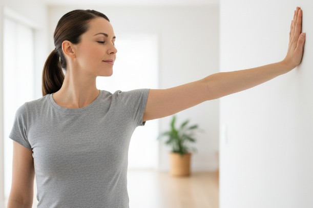 まず試してほしいのが、壁を使ったシンプルなストレッチです。