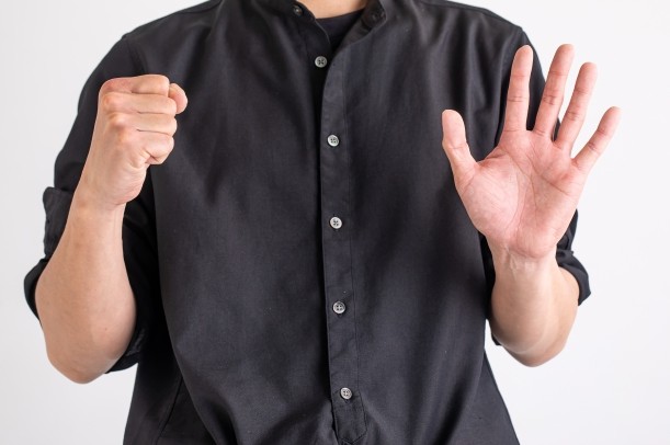 グーを5秒間握り、ゆっくりパーに開く。これを10回ほど繰り返します。