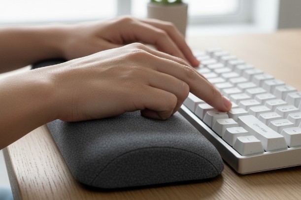 キーボードやマウスの高さを調整し、手首が自然にまっすぐ保たれる位置で操作するのがポイントです。
