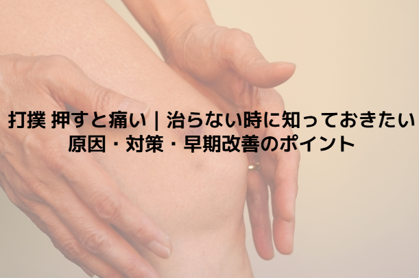 以上より、「打撲 押すと痛い 治らない」と感じたときには、自分で「ただぶつけただけ」と判断せず、押すと痛むしこり・腫れの残り・動かすと痛むといったサインを見逃さないことが、早めの改善につながるポイントと言われています。