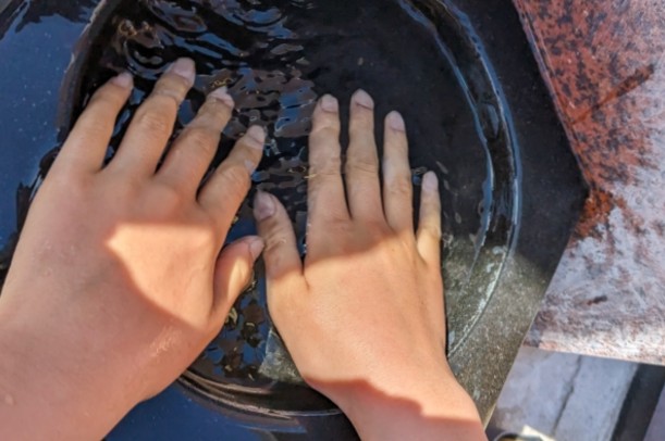 ぬるめのお湯に手全体を浸けたり、温タオルで包み込むことで、