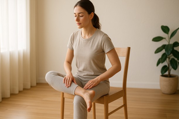 例えば、椅子に座ったまま片足を膝の上に乗せ、体を前に少し倒すとお尻の奥が伸びます。無理に反らさず“気持ちいい程度”で止めるのがポイントです(引用元:https://rehasaku.net/magazine/lower/disc-herniation/ )。