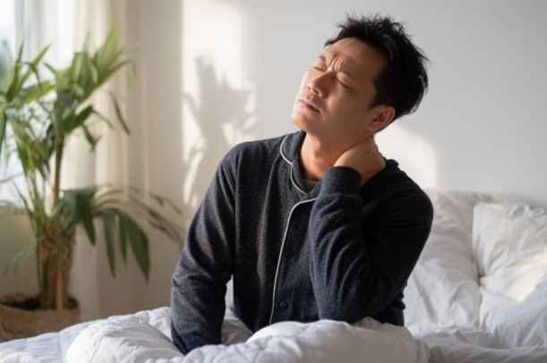 この状態で冷えや睡眠中の寝姿勢が重なると、血行不良を起こしやすく、朝起きた時にピキッとした痛みを感じることがあるとされています。