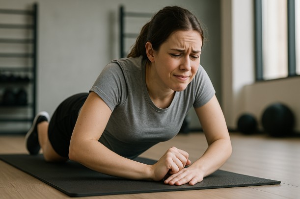 特に、大胸筋や上腕三頭筋が弱いと、腕がプルプルしてすぐに限界が来ることがあります。