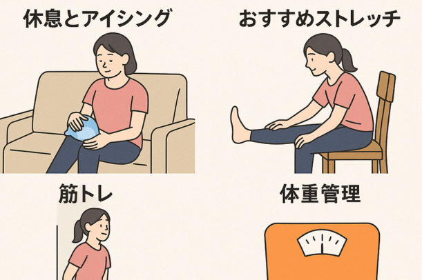 #膝のセルフケア #アイシングと休息 #ストレッチ習慣 #筋トレで安定 #体重管理と関節