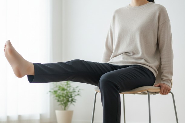 簡単にできる方法として、椅子に座ったまま片脚を前に伸ばして数秒キープする「レッグエクステンション」などがあります。