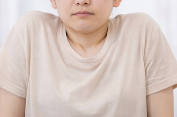 また、肩が前へ入る巻き肩の姿勢では、肩の位置が変わることで首まわりのラインが変化する場合があるとされています。体の姿勢によって首の印象が変わることがあると言われています。