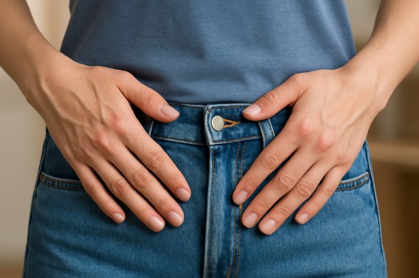 姿勢のくずれや、きついズボン・ベルトの圧迫などが要因となるケースもあります。